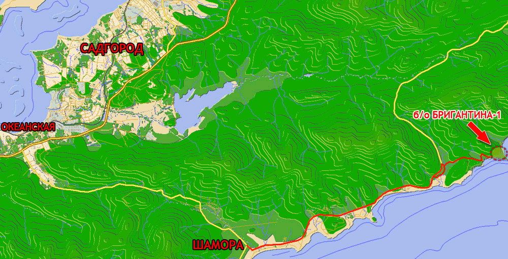 База отдыха «Бригантина1» расположена в живописном месте на берегу бухты Якорная, мыс Вилкова Уссурийского залива Японского моря, в 40 километрах от города Владивостока.