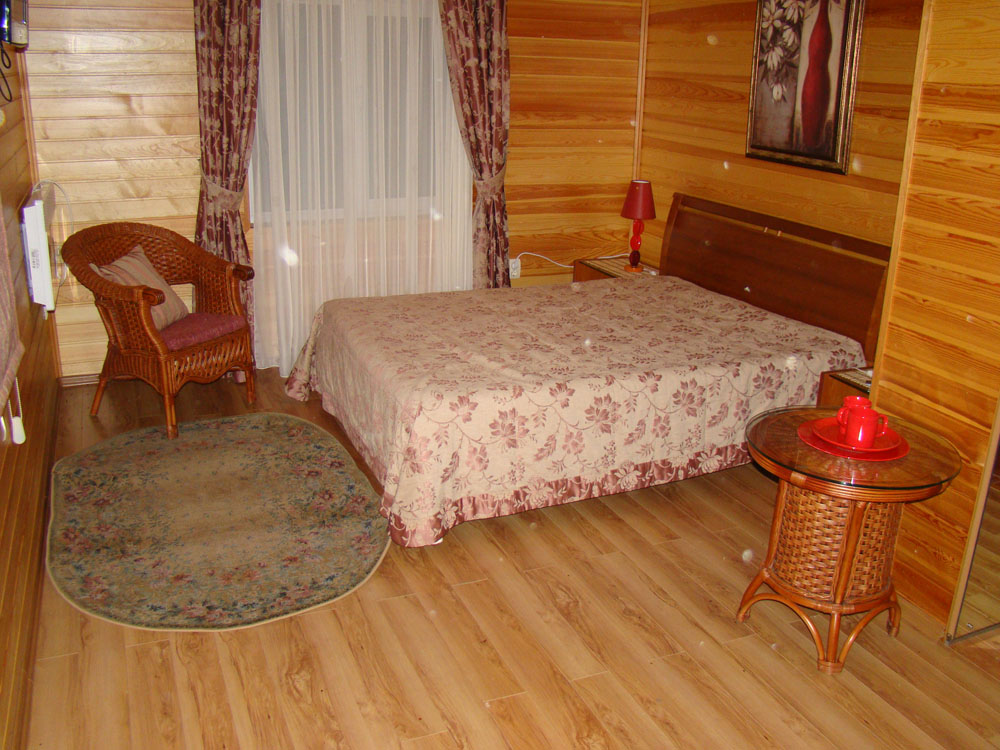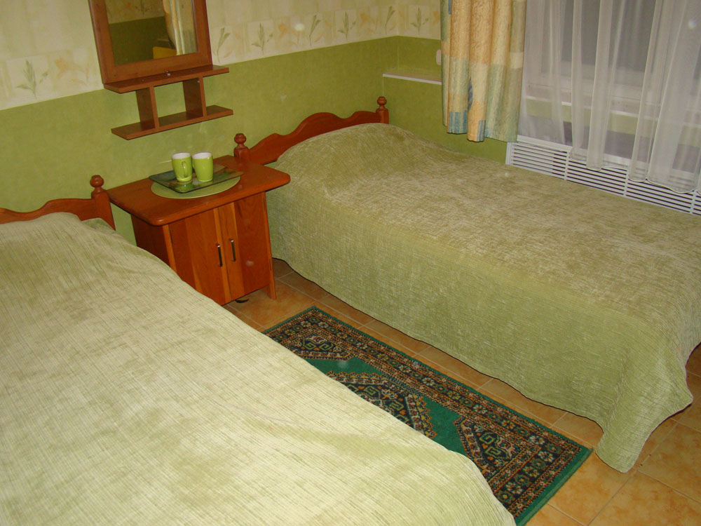 В номере 2-х спальная кровать, два кресла, шкаф, холодильник, телевизор. Холодное и горячее водоснабжение. Санузел совмещенный (душ, туалет, умывальник).